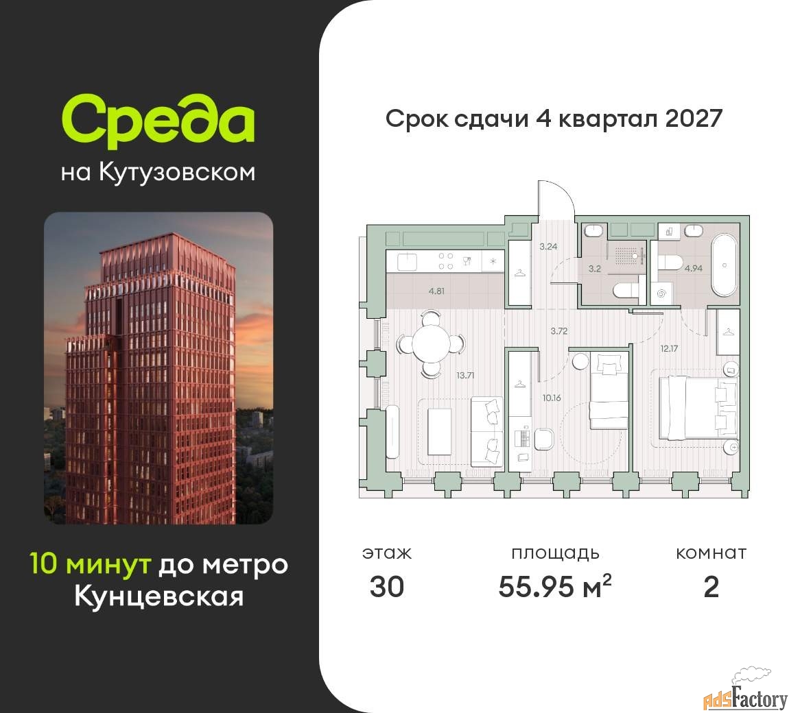Застройщик - Среда, сдача дома - IV квартал 2027 года, высота потолков 2.92 м.