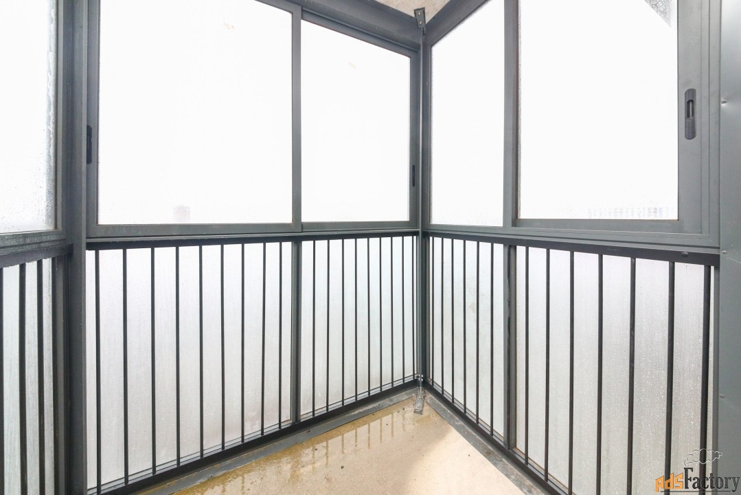 - Кухня с лоджией; лоджия застеклена «в пол», за счёт чего на кухне очень много света.