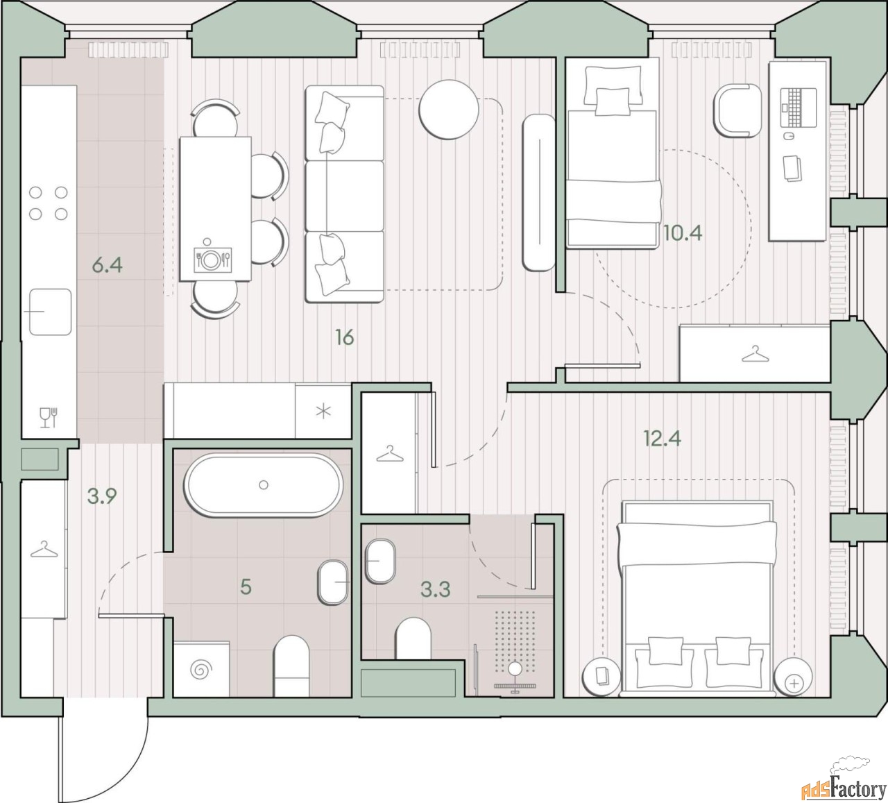 Жилая площадь 38.8 м2, предчистовая отделка, комнаты изолированные.