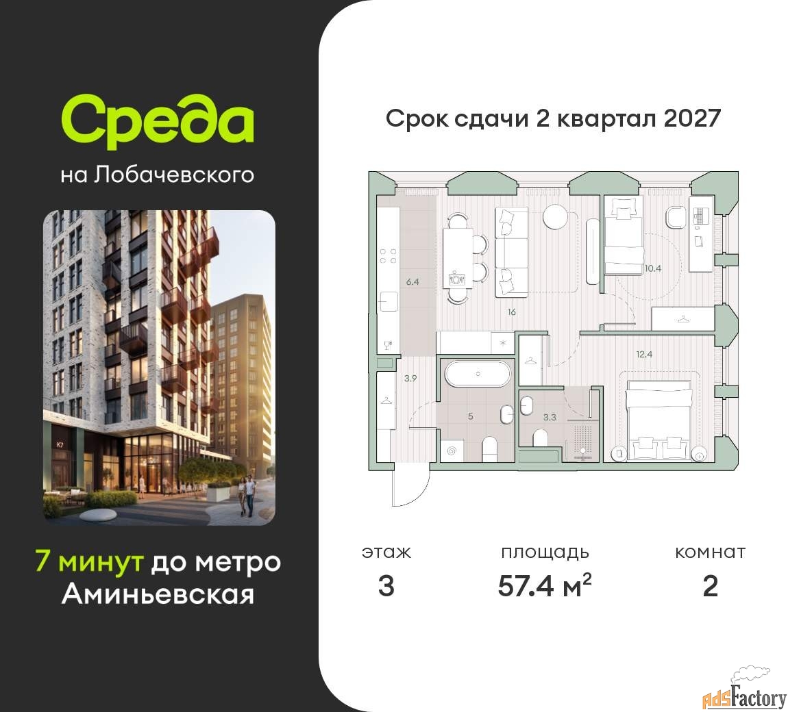 Застройщик - Среда, сдача дома - II квартал 2027 года, высота потолков 2.92 м.