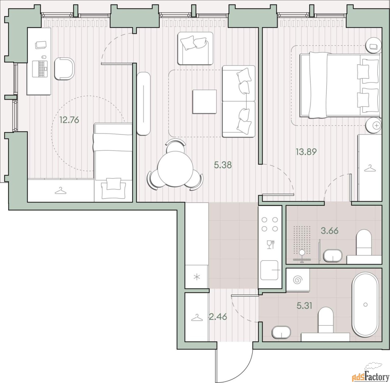 Жилая площадь 26.65 м2, кухня 5.38 м2, квартира без отделки, комнаты изолированные.