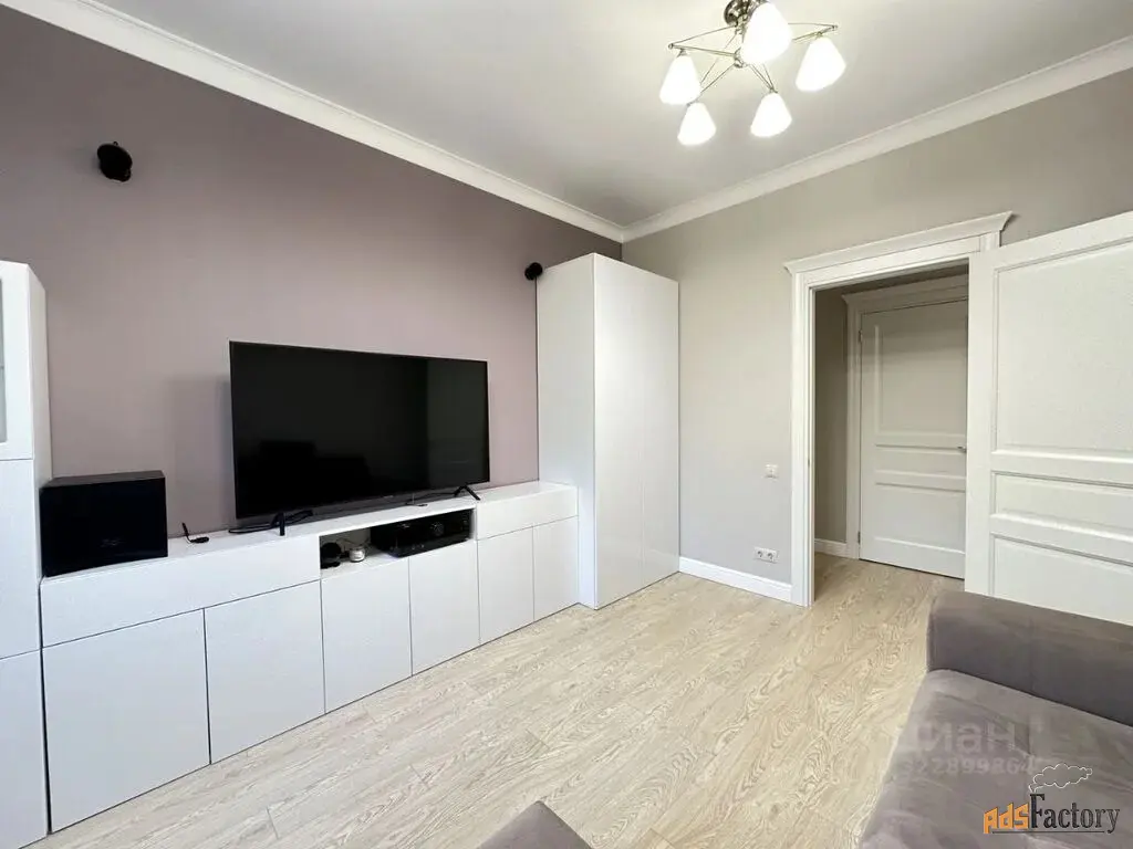 В гостиной угловой раскладной диван, рабочее место, телевизор+ домашний кинотеатр, сплит система и бризер, шкафы.