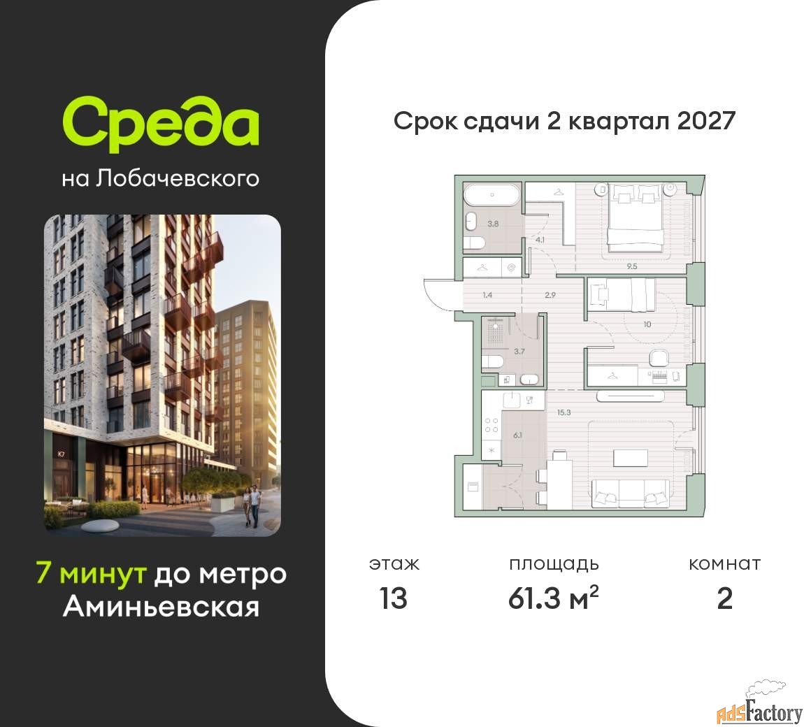 Застройщик - Среда, сдача дома - II квартал 2027 года, высота потолков 2.92 м.