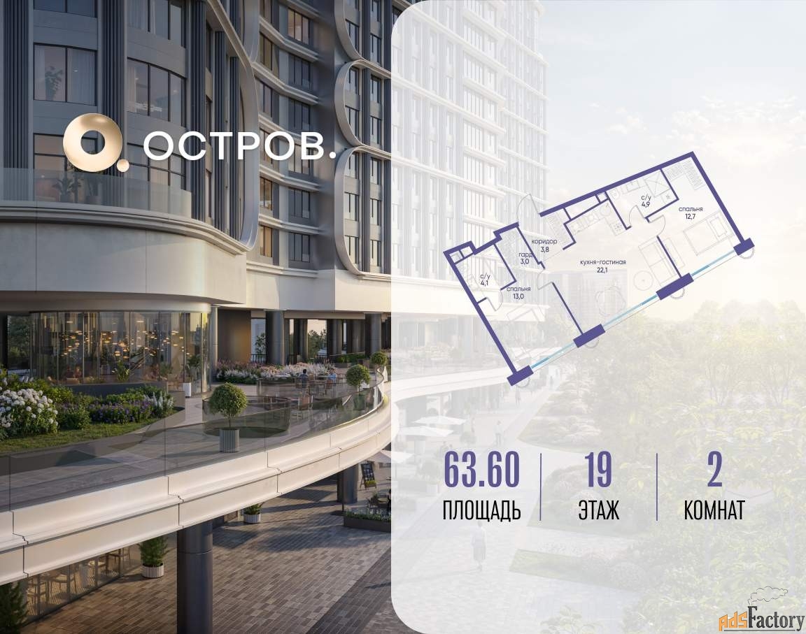 ОСТРОВ от Донстрой - жилой комплекс на западе Москвы, в Мневниковской пойме. Уникальное преимущество комплекса - в том, что он обособлен от города рекой и природным парком (650 га) . Благодаря природному окружению эта территория имеет лучший экологический рейтинг в столице. Кварталы ОСТРОВА объединены ландшафтным дизайном в единое пространство - с набережными и Центральным бульваром. На ОСТРОВЕ любые объекты, необходимые для полноценной жизни и отдыха, находятся на расстоянии 15-минутной прогулки. Торговый центр и супермаркеты, кафе и рестораны, фитнес, салоны красоты, школы и детские сады. А также крупнейший в Москве спортивный кластер. [#7719513#]