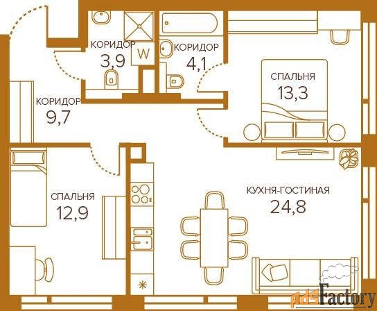 Общая площадь квартиры - 68.7 кв.м. В квартире выполнена премиальная отделка в неоклассическом стиле.