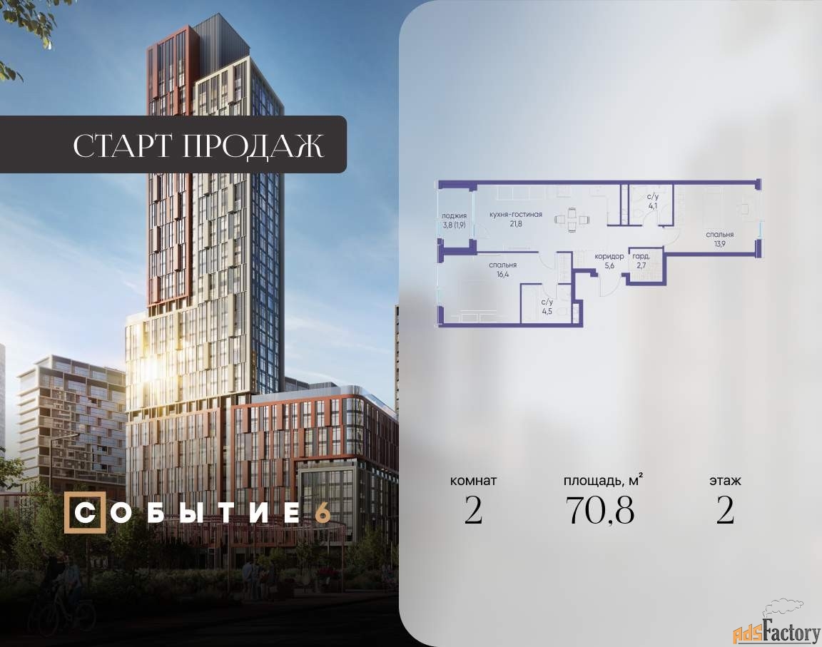 Архитектура мирового уровня. Выигрышное расположение на границе природного комплекса «Долина реки Раменки». Все для комфортной жизни и досуга: от детсадов и школ до ресторанов и медцентров. И новая точка притяжения - уже готовый парк «Событие» с пространствами активности для всех возрастов и интересов.