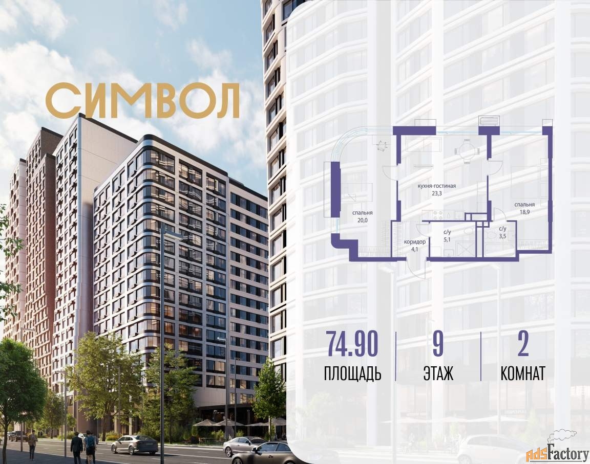 | Общая площадь (кв.м) | 74.9 |