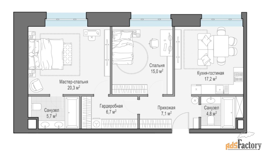 + Приватное тихое пространство. Предусмотрено все для жизни самого высокого уровня.