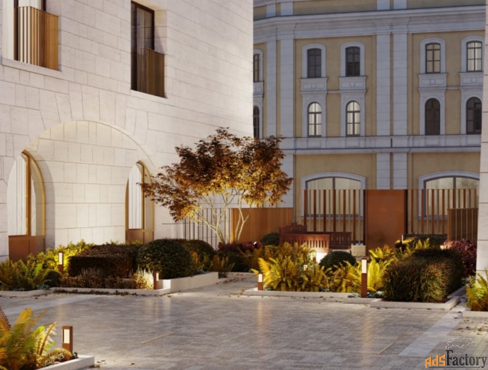 + Закрытый внутренний двор с ландшафтным театром. В общественных зонах арт - объекты и оригинальный декор.