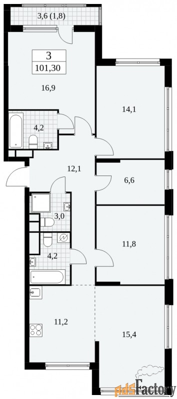 | Общая площадь (кв.м) | 101.3 |