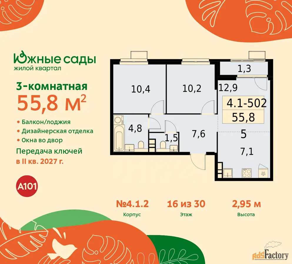 Артикул квартиры по базе застройщика 99К-4.1.2-502.