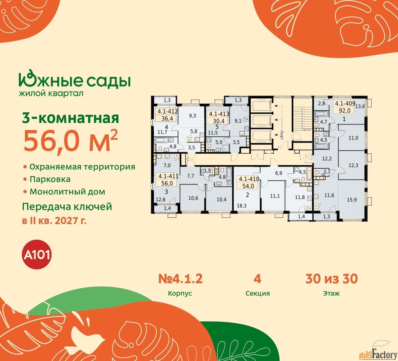 Артикул квартиры по базе застройщика 99К-4.1.2-411.