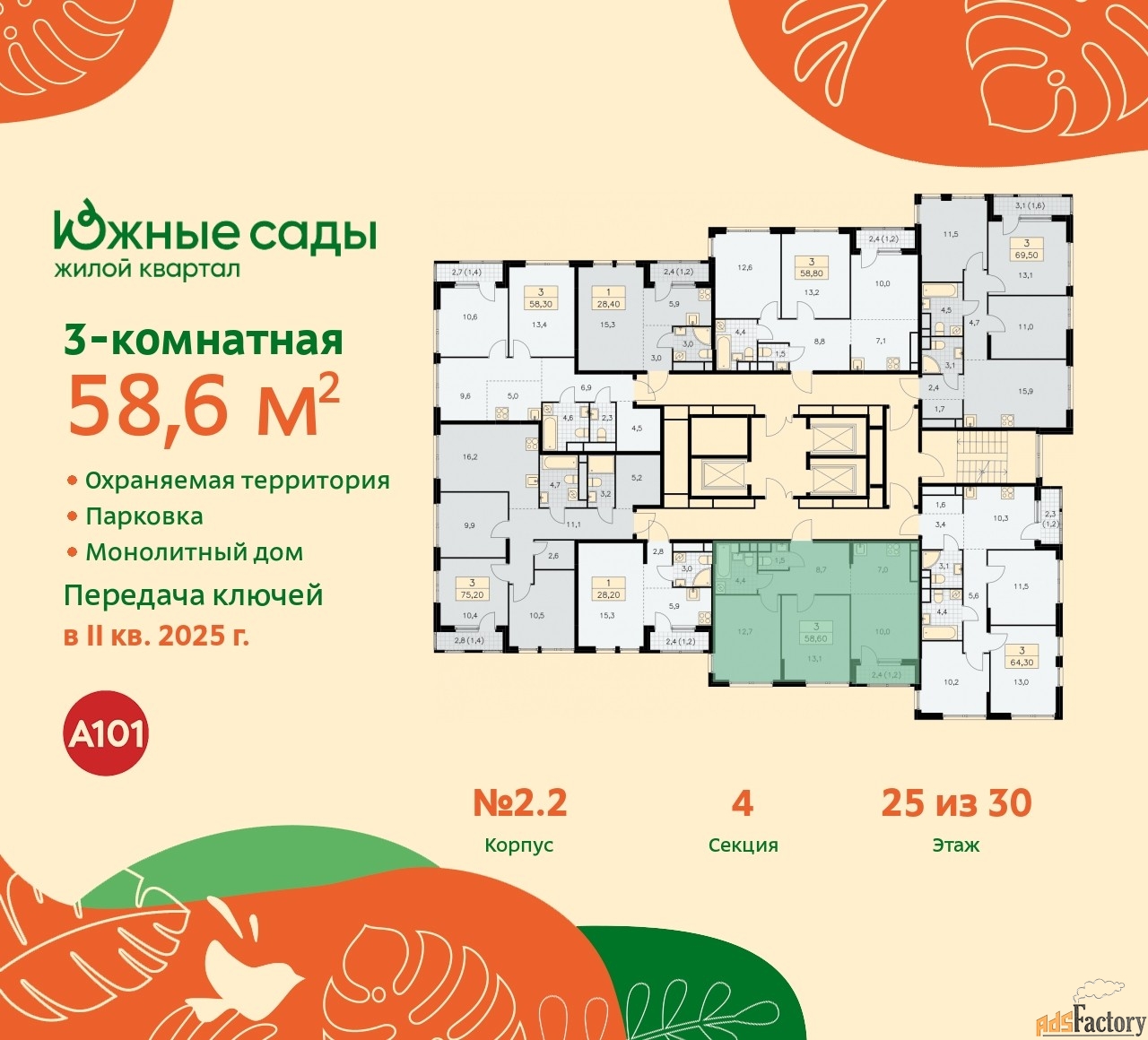 Новый проект «Южные сады» от застройщика «А101» будет построен на юге Москвы в пешей доступности от метро «Бунинская аллея». Дома будут возведены в окружении парков, а на территории комплекса будет выполнено благоустройство «Сады Средиземноморья» - тёплые оттенки и натуральные материалы покрытий, разнообразие плодовых и вечнозелёных деревьев, живые изгороди и эстетика средиземноморского сада. На первых этажах откроются магазины, кафе с летними террасами, фитнес-залы и салоны красоты.