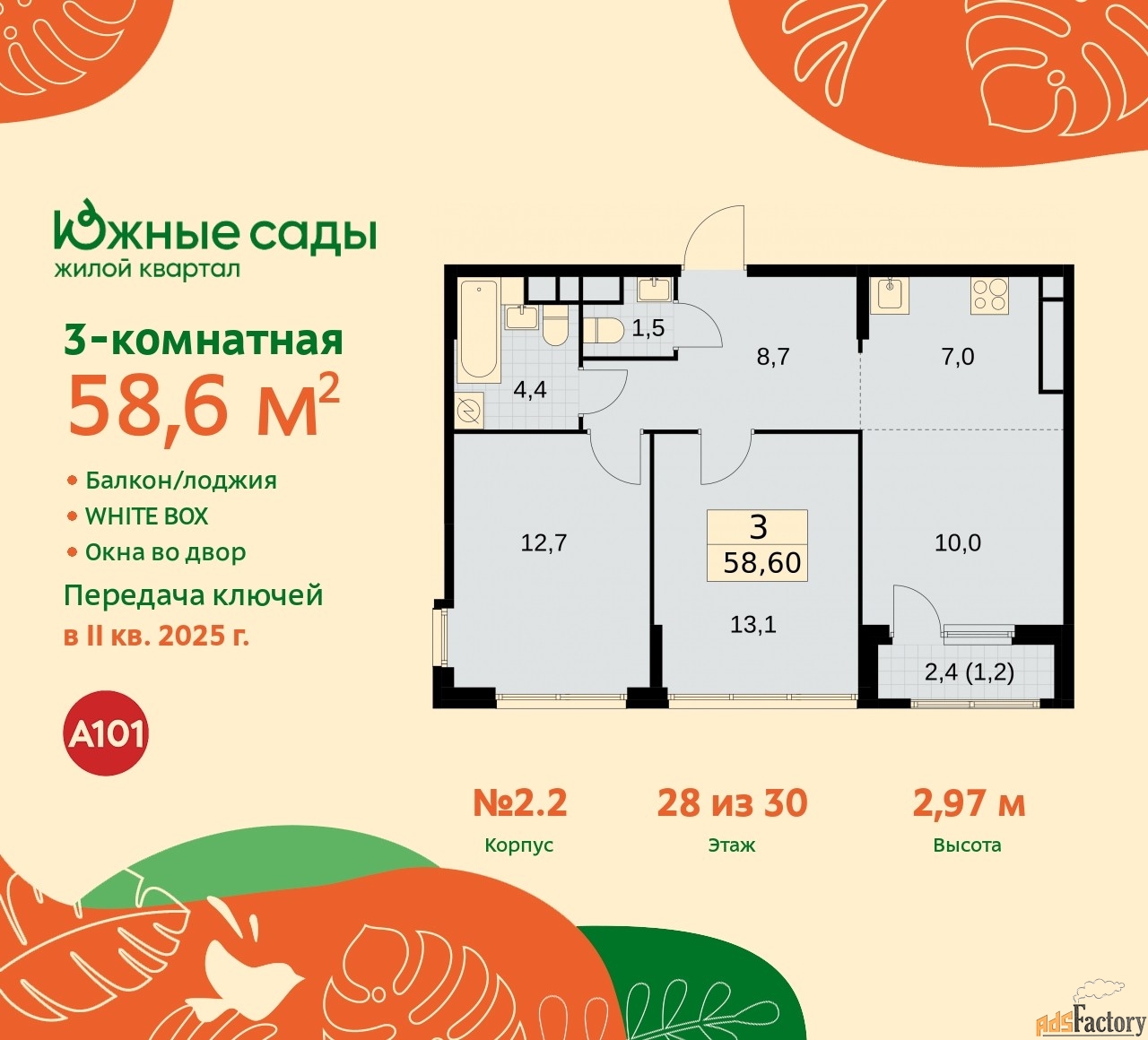 | Общая площадь (кв.м) | 58.6 |