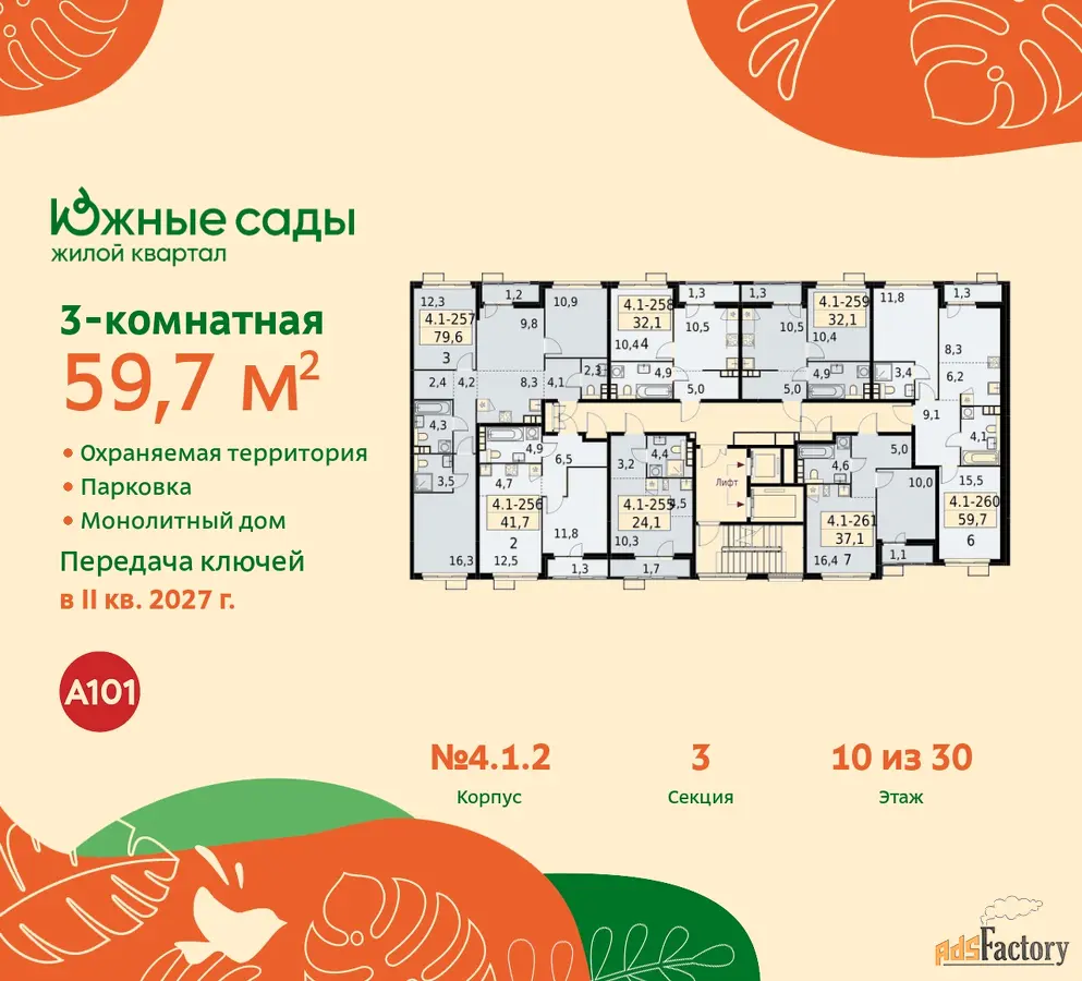 Артикул квартиры по базе застройщика 99К-4.1.2-260.
