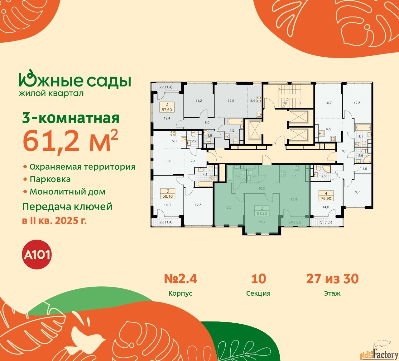 | Общая площадь (кв.м) | 61.2 |