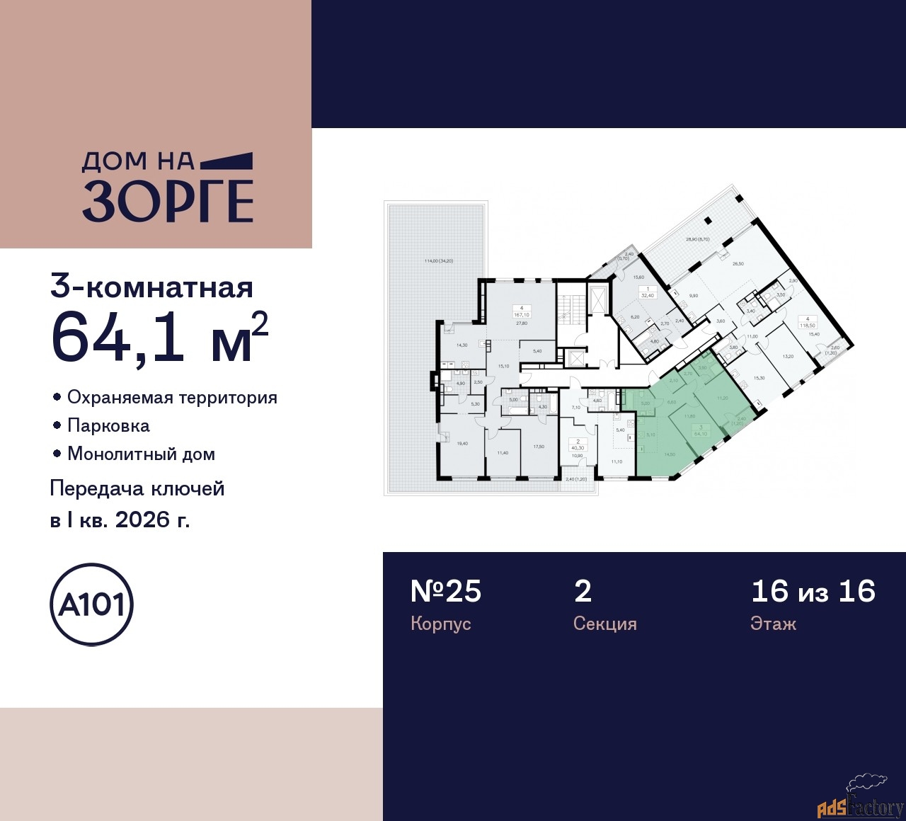 Дом монолитный, двухподъездный, высотой 16 этажей. Квартира находится во 2-й секции в корпусе 25. На этаже 8 квартир. В подъезде 1 пассажирский и 1 грузовой лифт. Начало строительства - 2 квартал 2023 года. Окончание строительства - 1 квартал 2026 года. Оформление сделки по договору долевого участия.