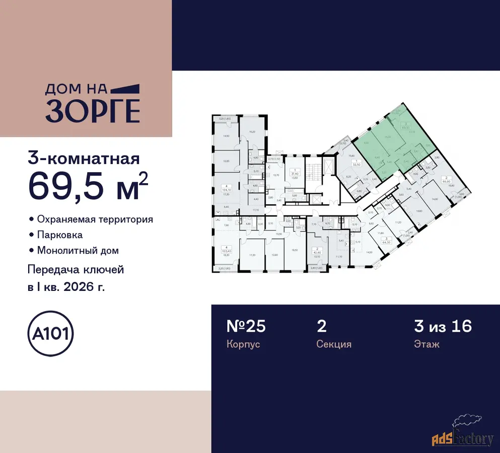 Дом монолитный, двухподъездный, высотой 16 этажей. Квартира находится во 2-й секции в корпусе 25. На этаже 8 квартир. В подъезде 1 пассажирский и 1 грузовой лифт. Начало строительства - 2 квартал 2023 года. Окончание строительства - 1 квартал 2026 года. Оформление сделки по договору долевого участия.