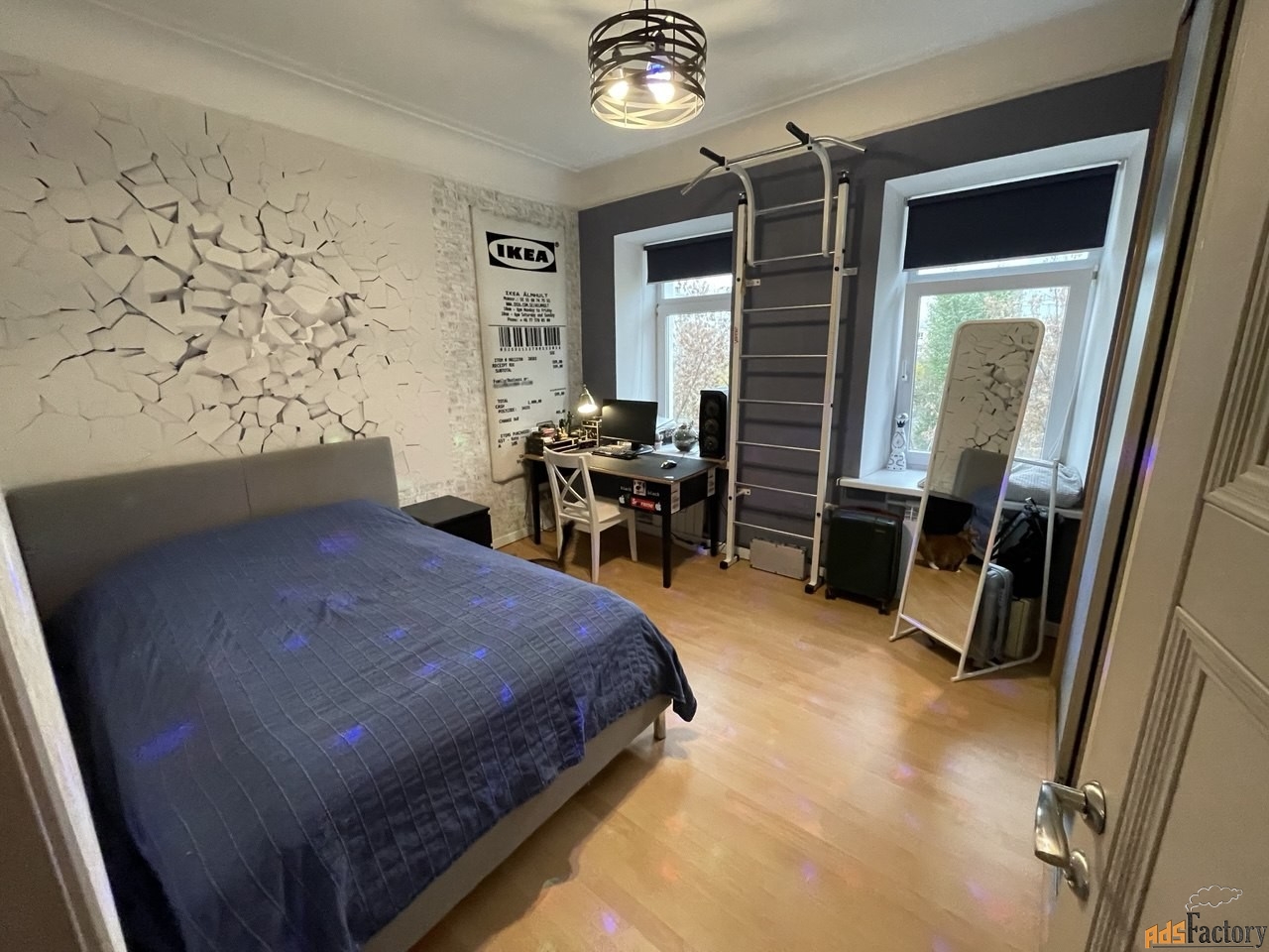 Площадь 70 м2, планировка — распашонка, квартира занимает полэтажа.