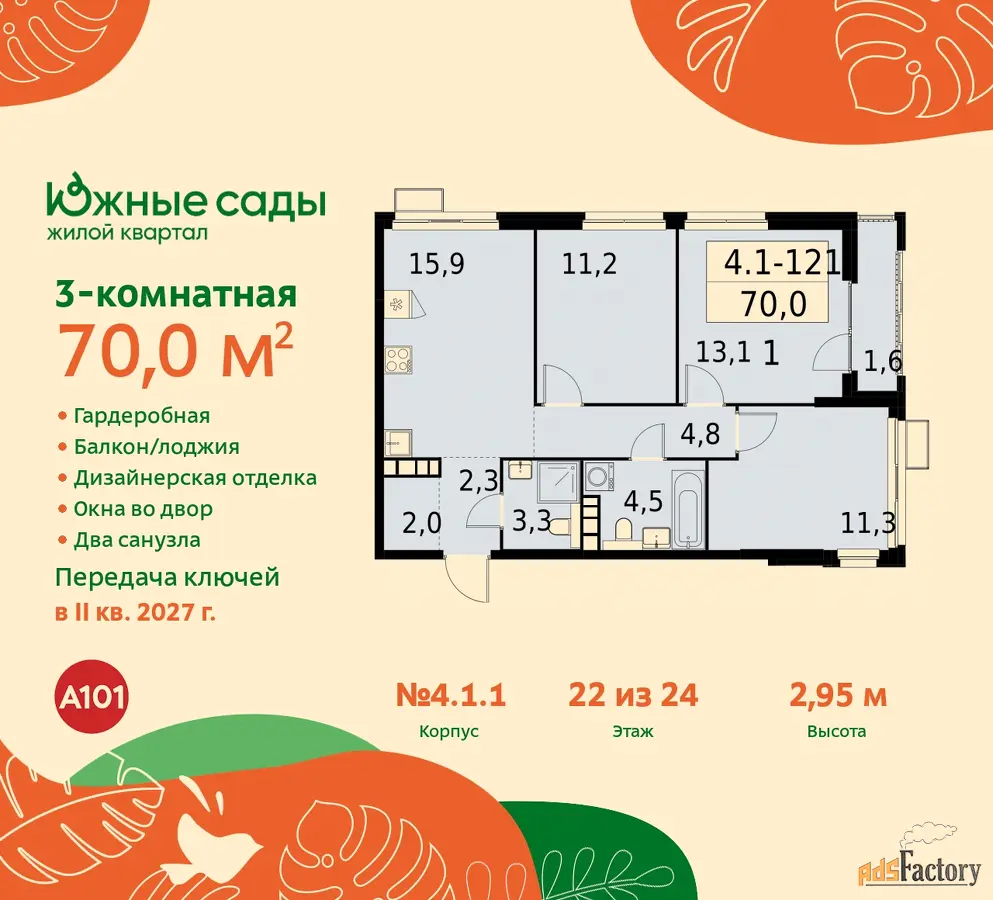 Артикул квартиры по базе застройщика 99К-4.1.1-121.