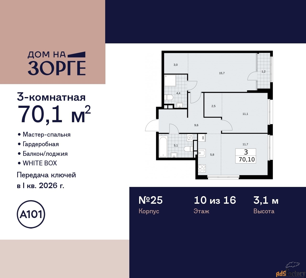 | Общая площадь (кв.м) | 70.1 |