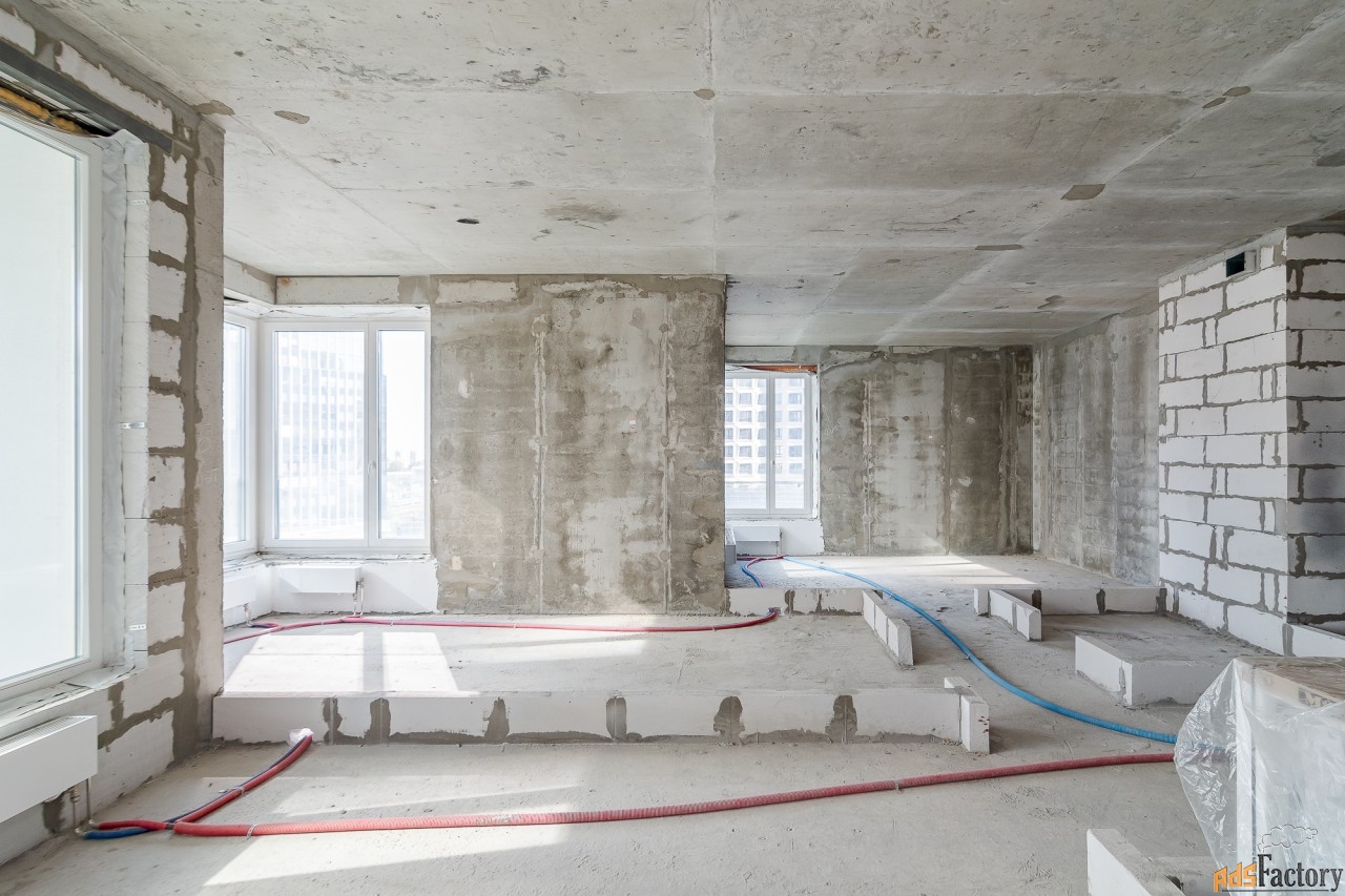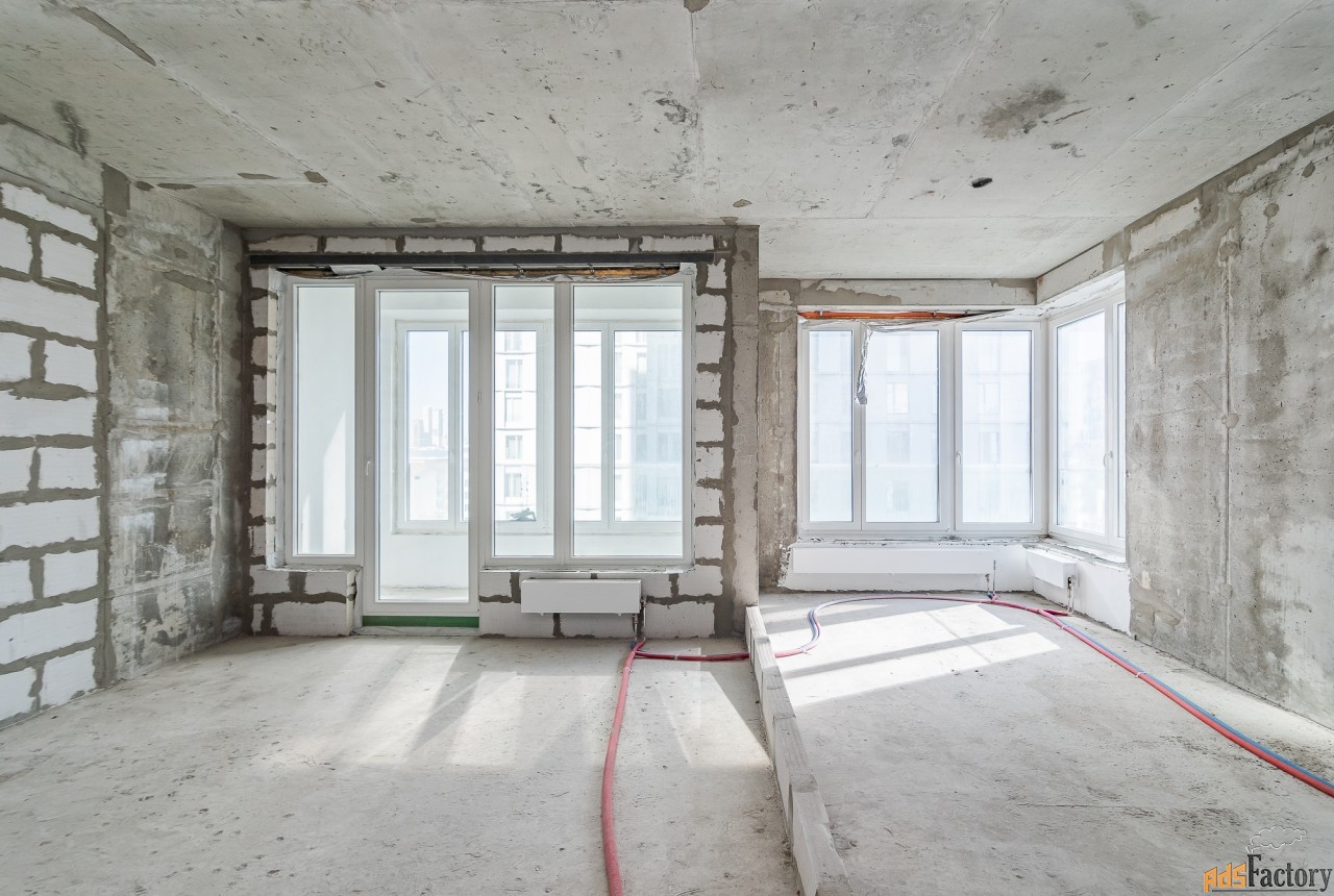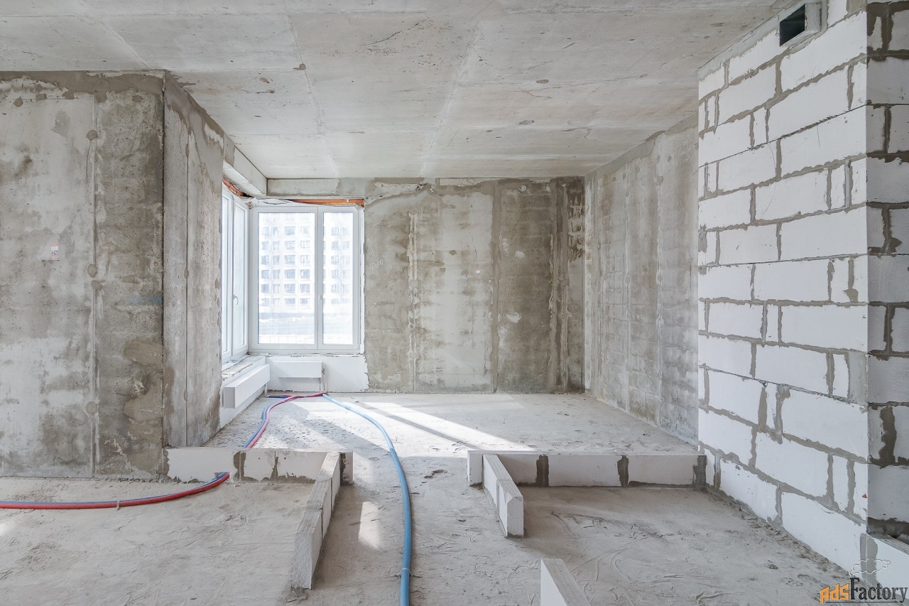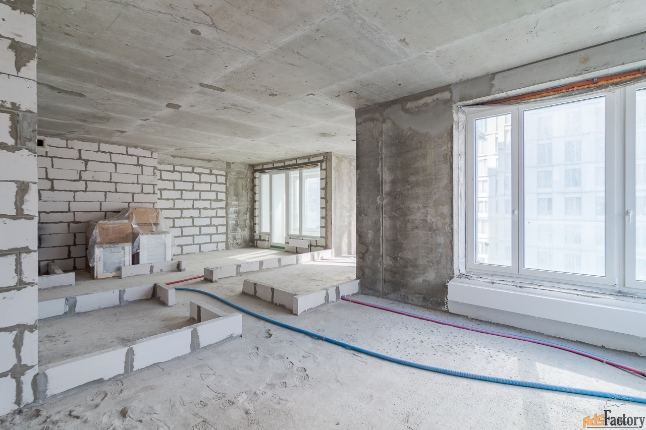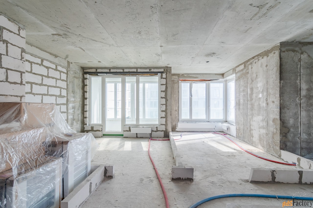 Квартира в черновой отделке, выделены мокрые зоны, установлены двойные стеклопакеты, заведены коммуникации и установлены счетчики. Потолки 3,2 м.