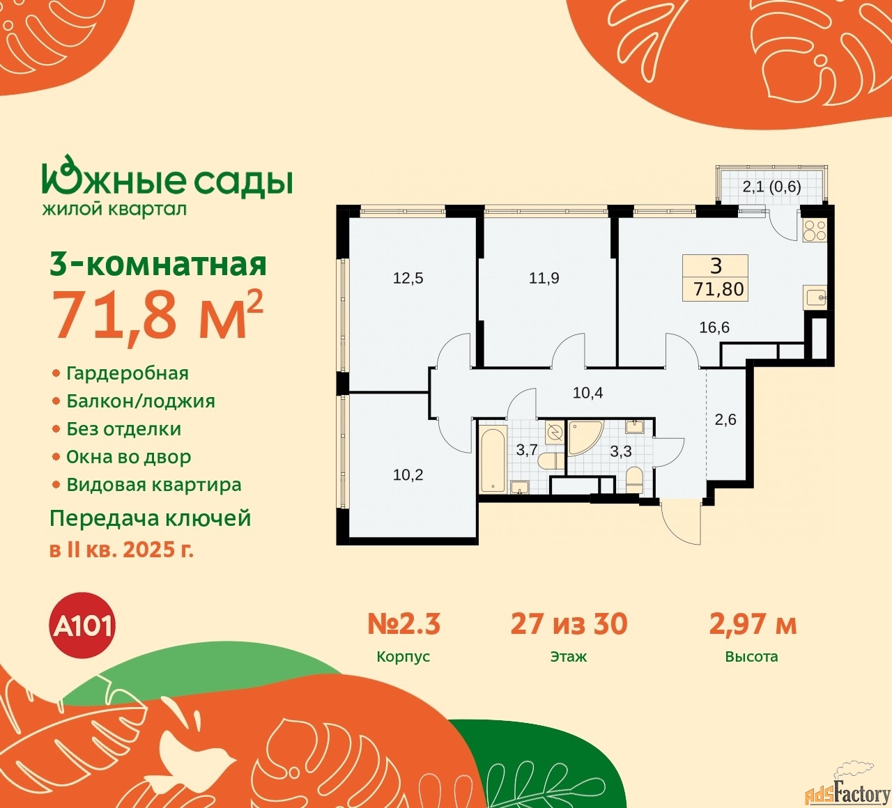 Артикул квартиры по базе застройщика 99К-2.3-922.