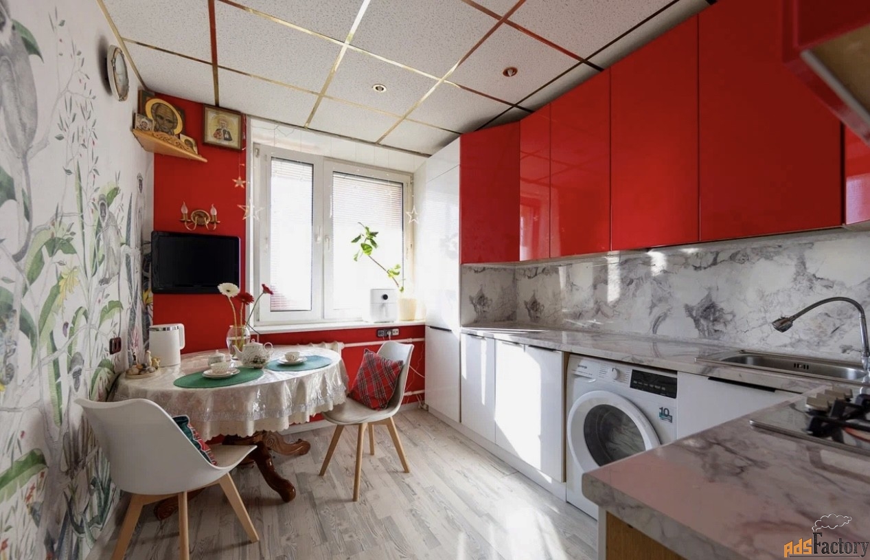 Кухня: 10 м2 современная и функциональная, духовка, варочная панель, посудомойка, стиральная машина ( ariston, gorenje).