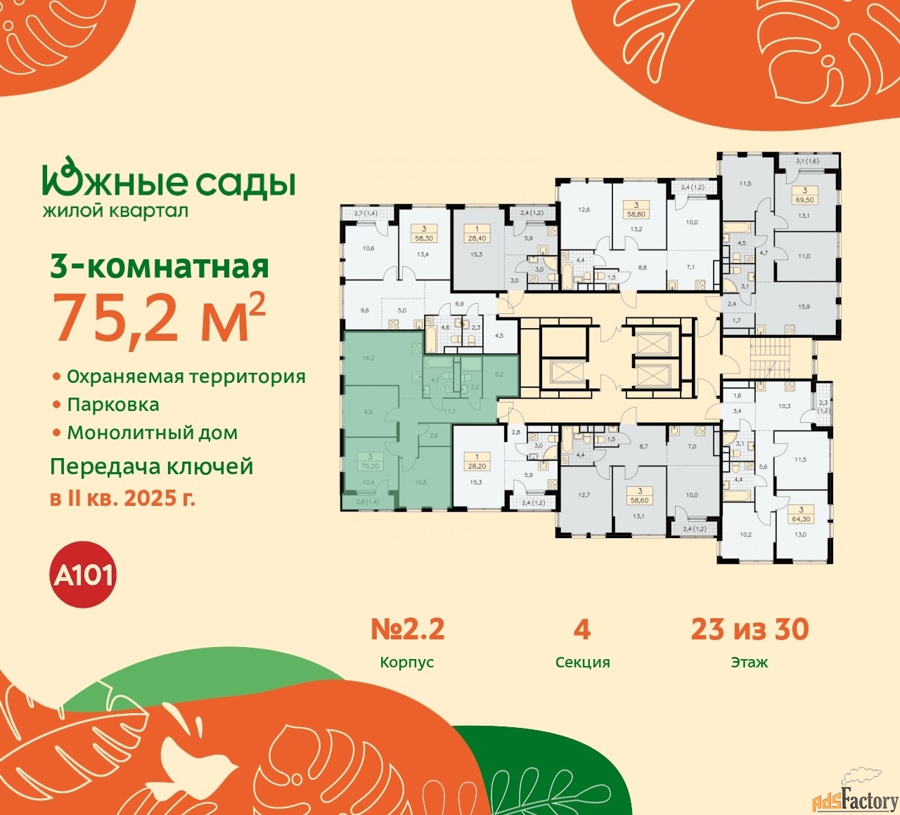 Новый проект «Южные сады» от застройщика «А101» будет построен на юге Москвы в пешей доступности от метро «Бунинская аллея». Дома будут возведены в окружении парков, а на территории комплекса будет выполнено благоустройство «Сады Средиземноморья» - тёплые оттенки и натуральные материалы покрытий, разнообразие плодовых и вечнозелёных деревьев, живые изгороди и эстетика средиземноморского сада. На первых этажах откроются магазины, кафе с летними террасами, фитнес-залы и салоны красоты.