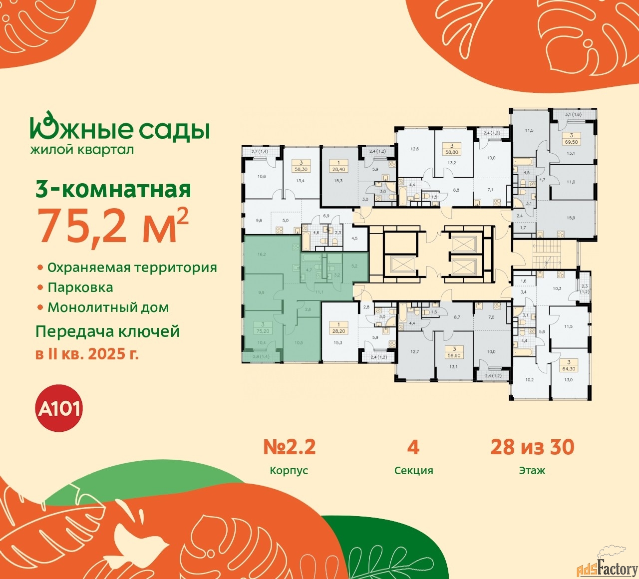 Новый проект «Южные сады» от застройщика «А101» будет построен на юге Москвы в пешей доступности от метро «Бунинская аллея». Дома будут возведены в окружении парков, а на территории комплекса будет выполнено благоустройство «Сады Средиземноморья» - тёплые оттенки и натуральные материалы покрытий, разнообразие плодовых и вечнозелёных деревьев, живые изгороди и эстетика средиземноморского сада. На первых этажах откроются магазины, кафе с летними террасами, фитнес-залы и салоны красоты.