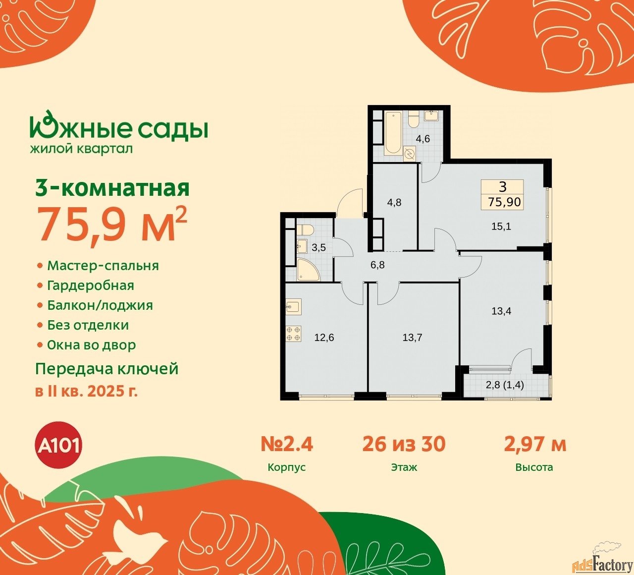 | Общая площадь (кв.м) | 75.9 |