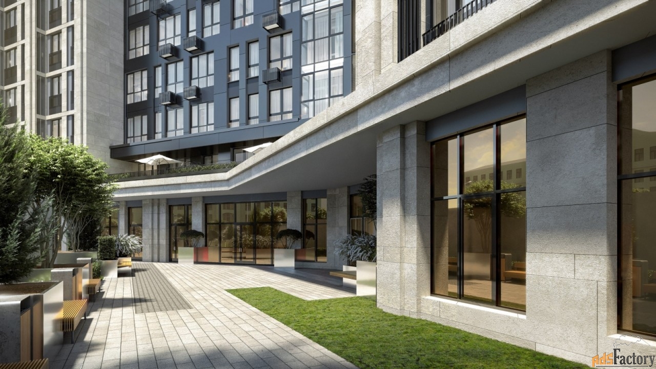 На территории дома будут благоустроены общий и приватный (доступный только жителям) дворы. Дизайн каждой функциональной зоны уникален, а вместе они подчёркивают благородный архитектурный стиль здания. В основе цветовых решений – «отражение» фасадов, мягкие природные оттенки. (AQID02221155)