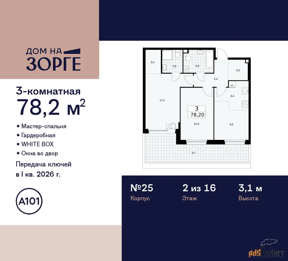 Дом монолитный, двухподъездный, высотой 16 этажей. Квартира находится во 2-й секции в корпусе 25. На этаже 8 квартир. В подъезде 1 пассажирский и 1 грузовой лифт. Начало строительства - 2 квартал 2023 года. Окончание строительства - 1 квартал 2026 года. Оформление сделки по договору долевого участия.