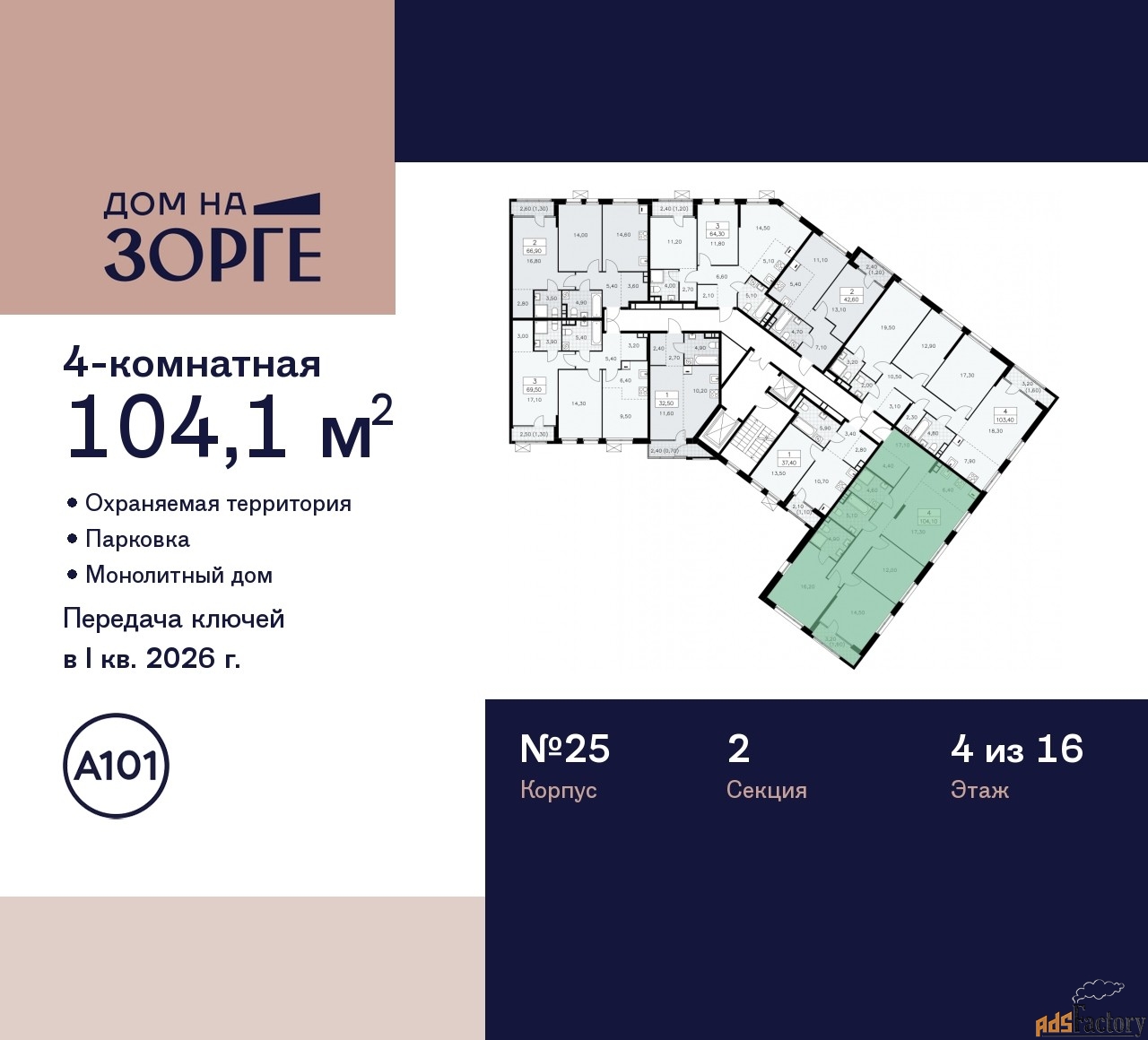 Дом монолитный, двухподъездный, высотой 16 этажей. Квартира находится во 2-й секции в корпусе 25. На этаже 8 квартир. В подъезде 1 пассажирский и 1 грузовой лифт. Начало строительства - 2 квартал 2023 года. Окончание строительства - 1 квартал 2026 года. Оформление сделки по договору долевого участия.