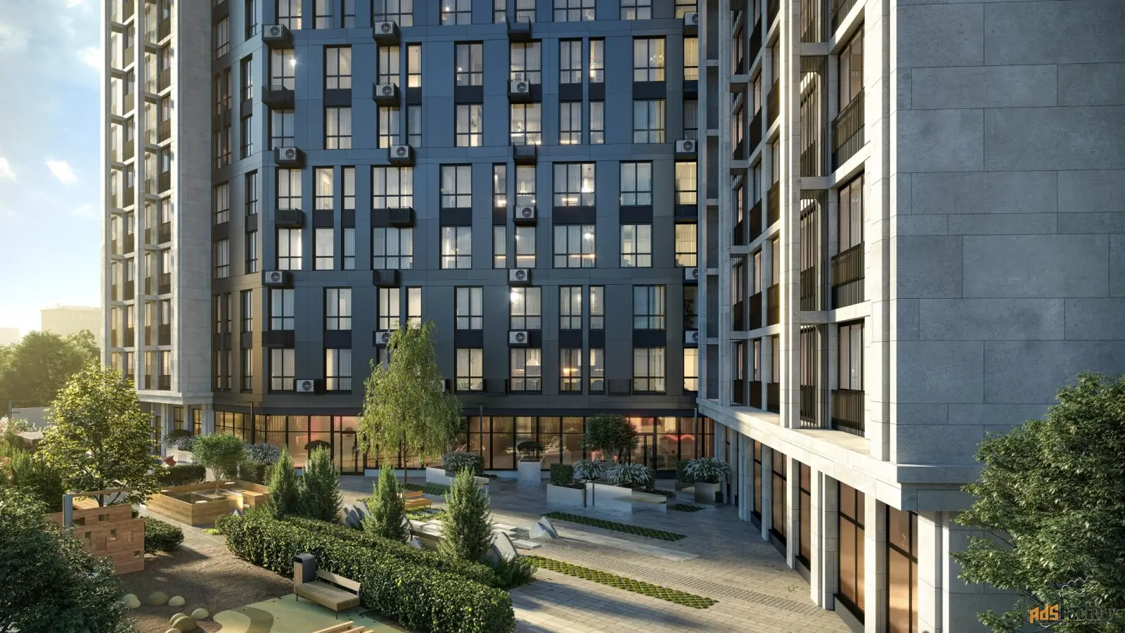 На территории дома будут благоустроены общий и приватный (доступный только жителям) дворы. Дизайн каждой функциональной зоны уникален, а вместе они подчёркивают благородный архитектурный стиль здания. В основе цветовых решений – «отражение» фасадов, мягкие природные оттенки. (AQID02221186)