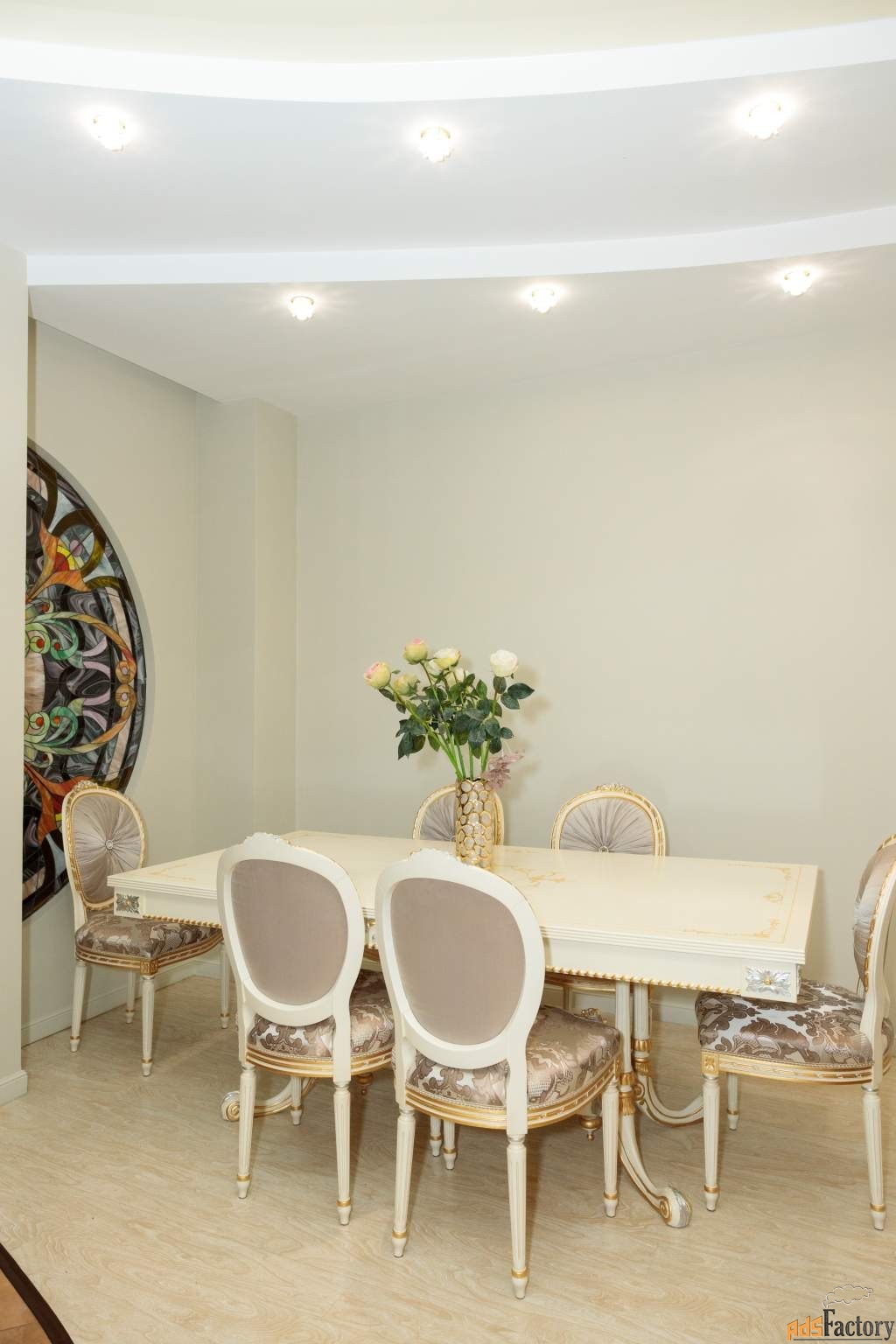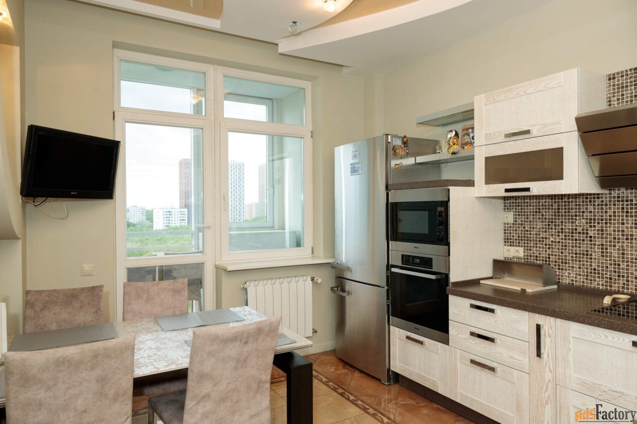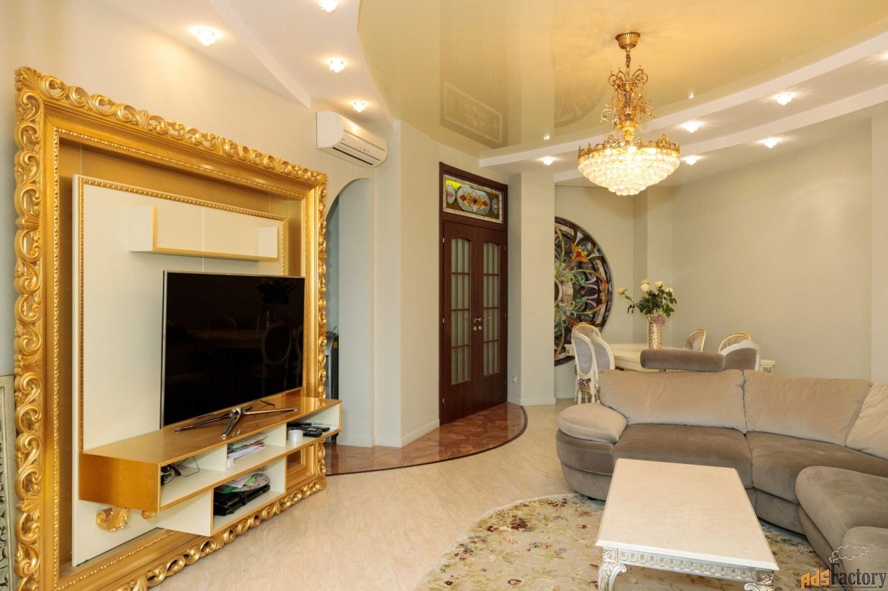 Жилая площадь 100 м2, кухня 19 кв.м. Квартира имеет великолепные видовые характеристики! Площадь комнат: 25/20/35/20 м2, ремонт по авторскому проекту, комнаты изолированные. Квартира с мебелью, есть бытовая техника: стиральная машина, холодильник, телевизор, кондиционер, посудомоечная машина, микроволновая печь, встроенная техника, интернет. Раздельных санузлов - 1, совмещенных санузлов - 1.