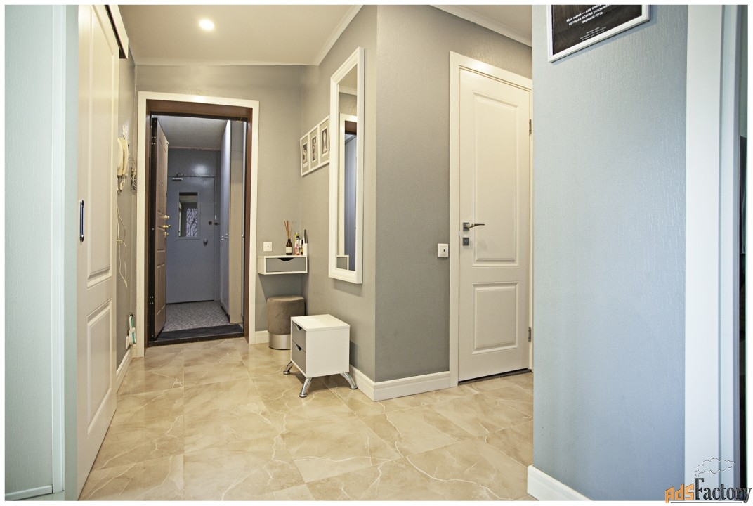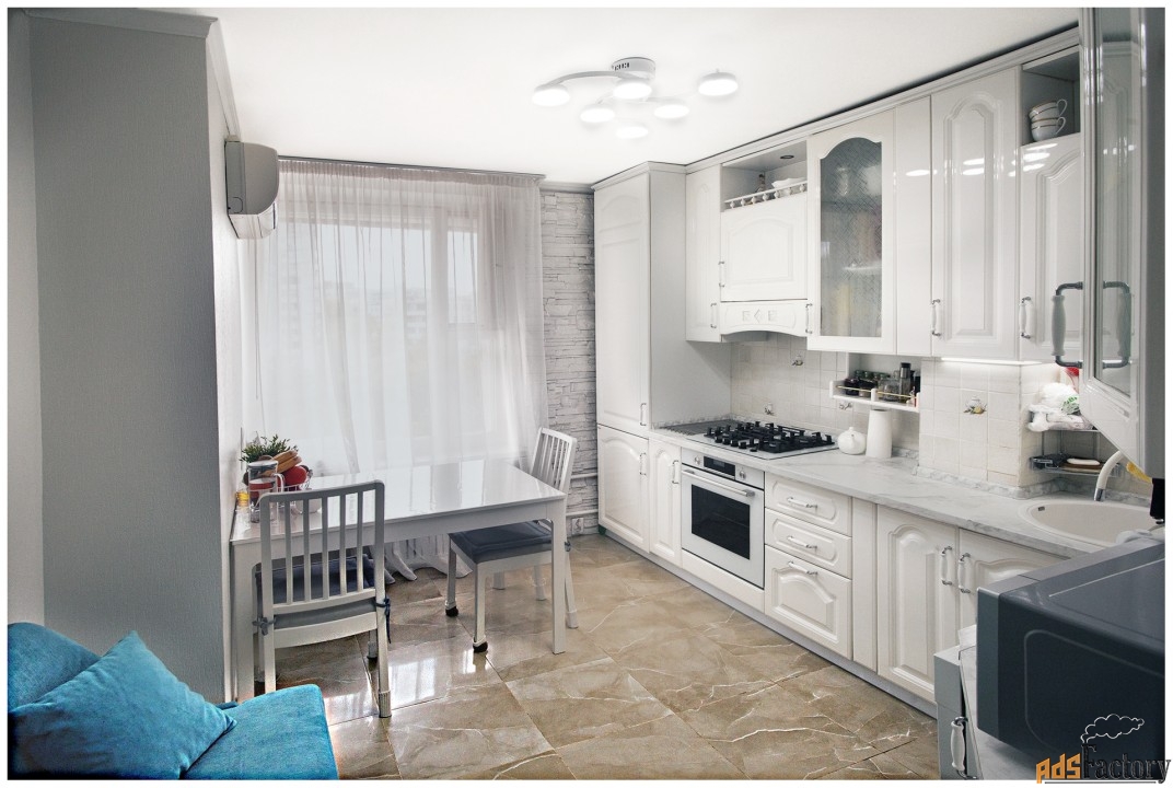 Квартира: Общ. S=72,2 кв.м. Жилая пл. – 54 кв.м. Комнаты изолиров.: (12+17+10+15). Окна выходят на 3 стороны. Лоджия – 6 кв.м. – Южная сторона. Потолки - h=2,5 м. Кухня - 10 кв.м. Отдельное помещение для кладовой и стиральной машины. Плита газовая. Сплит системы (Кондиционеры) во всех помещениях. Санузел совмещённый (СУС). Полы: В жилых помещениях – паркет. На кухне, в Санузле и коридоре – мраморная плитка. Дизайнерский ремонт. Все системы жизнеобеспечения – Централизованные. Из окон красивый вид на благоустроенный двор и прилегающую территорию.