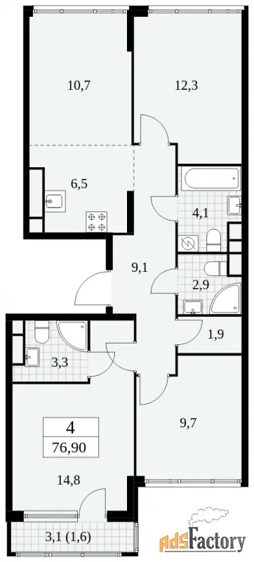 | Общая площадь (кв.м) | 76.9 |