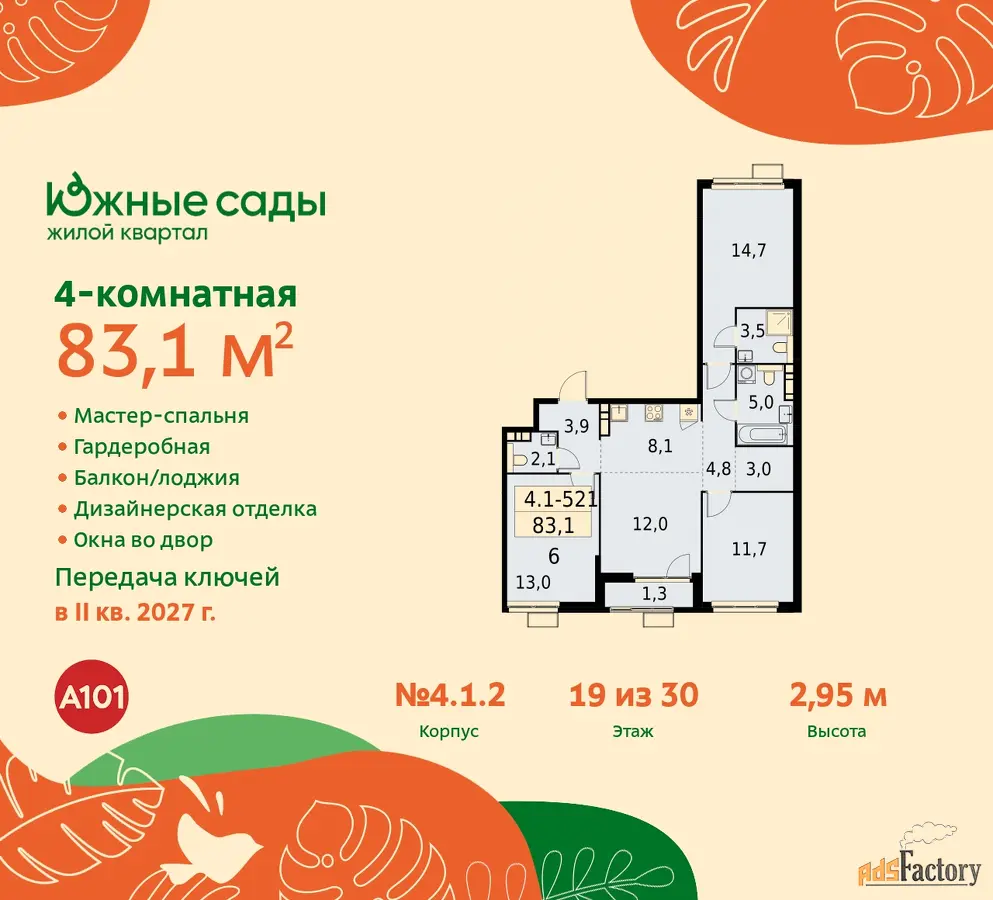 Артикул квартиры по базе застройщика 99К-4.1.2-521.