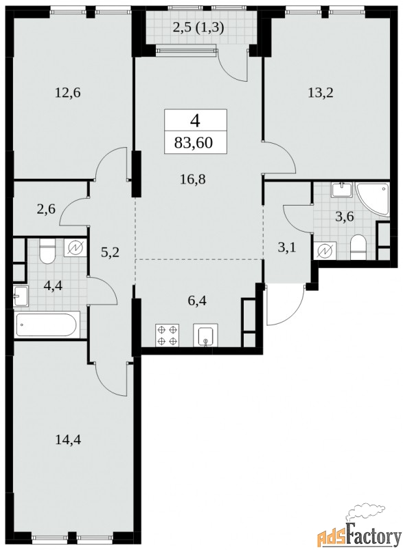 В каждой квартире предусмотрены летние помещения, просторные окна, высокие потолки. На ваш выбор застройщик предлагает как квартиры без отделки, с отделкой WHITE BOX, а также с дизайнерской отделкой. (AQID02526050)