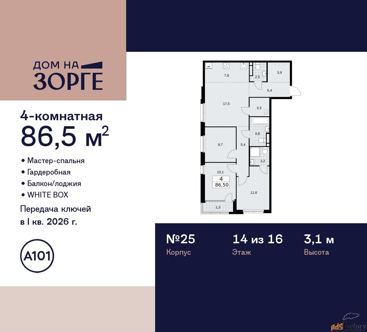 Дом монолитный, двухподъездный, высотой 16 этажей. Квартира находится в 1-й секции в корпусе 25. На этаже 13 квартир. В подъезде 2 пассажирских и 1 грузовой лифт. Начало строительства - 2 квартал 2023 года. Окончание строительства - 1 квартал 2026 года. Оформление сделки по договору долевого участия.