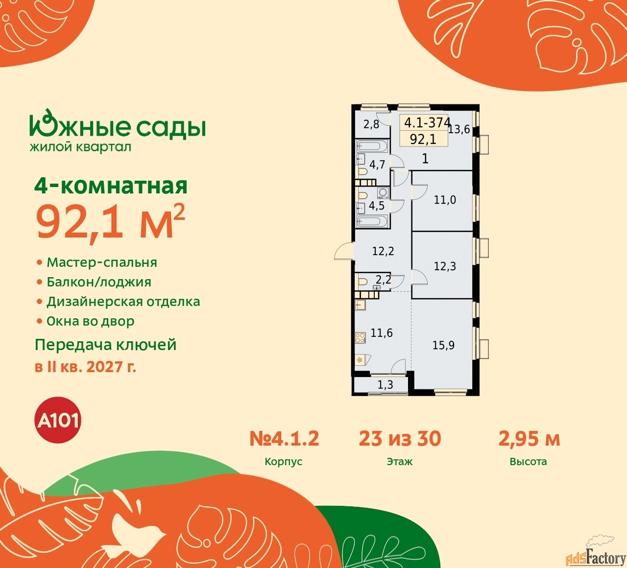 | Общая площадь (кв.м) | 92.1 |