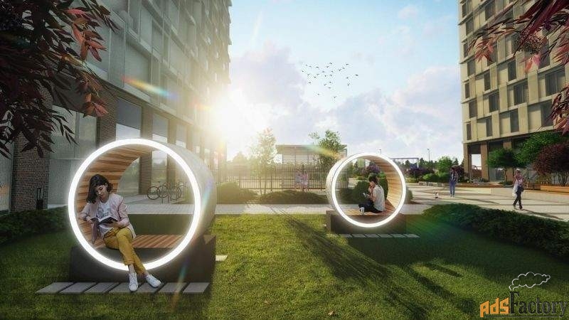 Закрытый двор без машин обеспечен круглосуточной охраной и системами контроля доступа. Двор создан как ландшафтное продолжение окружающих природных парков и зонирован для различных видов отдыха, детских игр, занятий спортом.