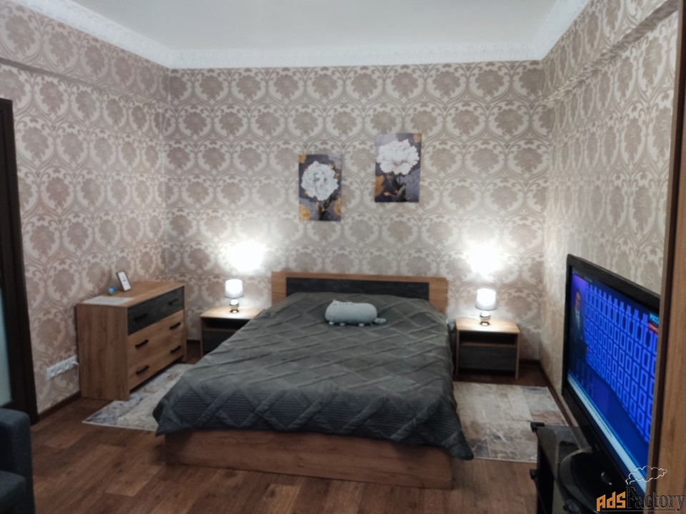комнатная квартира, в центре города, 100 метров от ж/д вокзала, полностью оборудованная всей мебелью и бытовой техникой, два отдельных спальных места, вся мебель новая, на срок от 2-х дней.