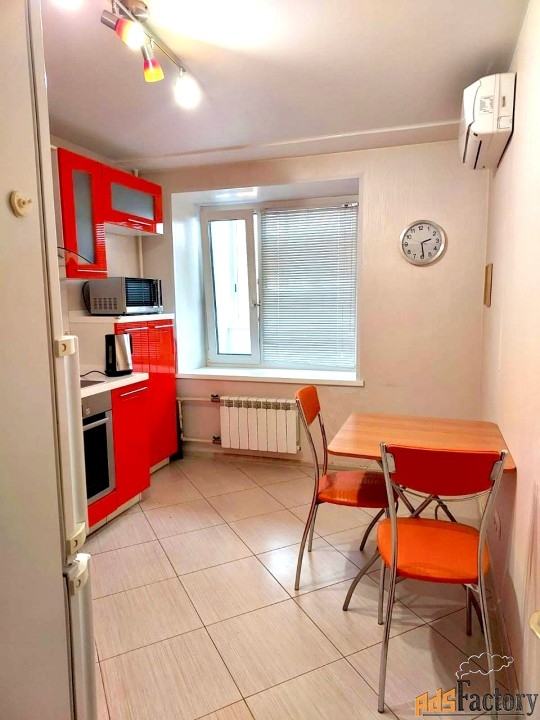 Продается уютная однокомнатная квартира, общей площадью 36 кв.м., в хорошем жилом состоянии. Комната 17 кв.м., с большой лоджией и гардеробной. Кухня 10 кв.м., со встроенной мебелью и техникой Bosch — холодильник, стиральная машина, ПМА, духовой шкаф, варочная панель, кондиционер . Окна во двор, с/у раздельный.