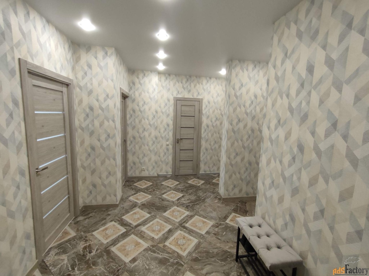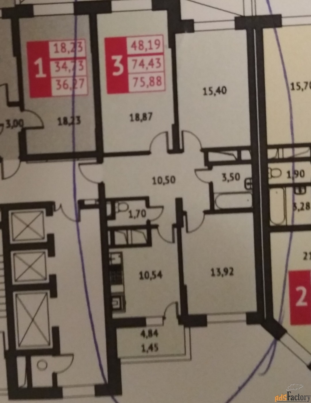 Жилая площадь 48.2 м2, кухня 10.54 кв.м. Площадь комнат: 18.87/15.40/13.92 м2, внутри евро ремонт, комнаты изолированные. Столовая объединена с кухней аркой. Квартира частично с мебелью. Раздельных санузлов - 1.