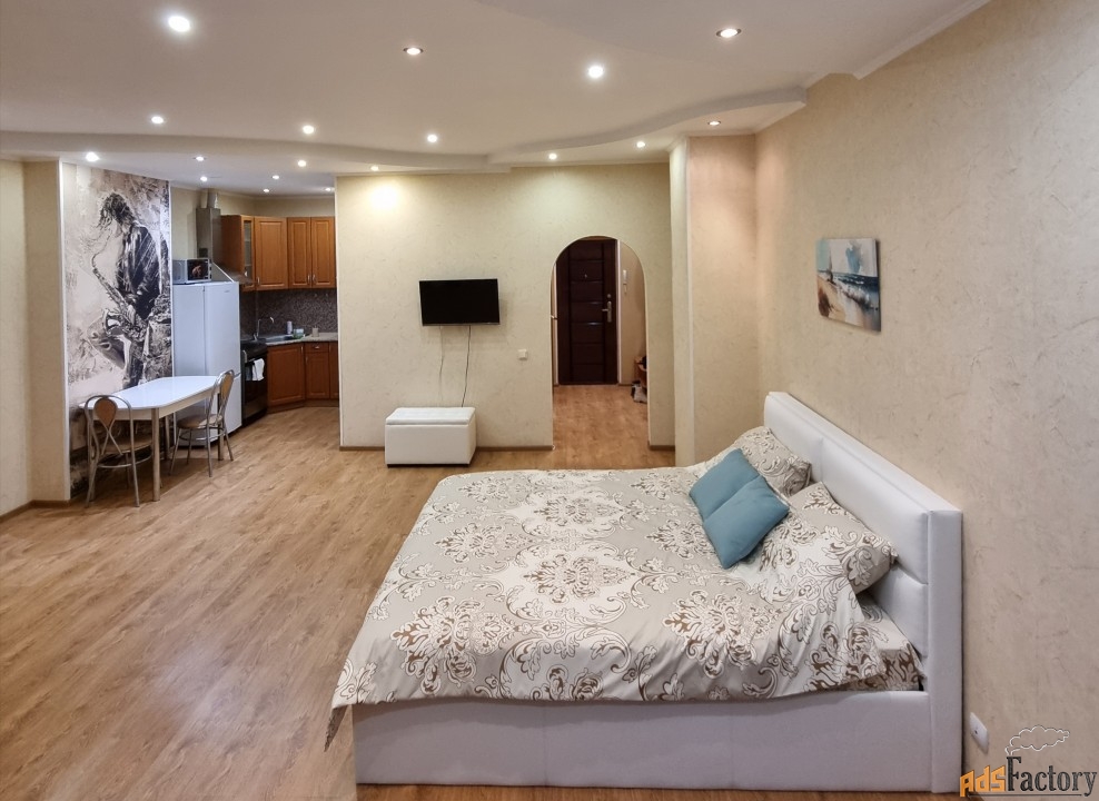 Просторная уютная студия посуточно! Центр города ✨Большая комфортная, всё для проживания есть. В шаговой доступности продуктовые магазины, красно белое, 10 мин. до ТЦ Космос, Грин Парк, Дом Быта Кристалл, Администрация и мн. другое)