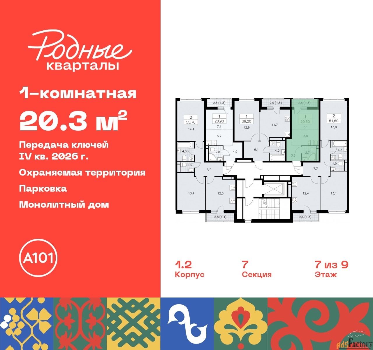 Дом монолитный, многоподъездный, высотой 9 этажей. Квартира находится в 6-й секции в корпусе 1.2. На этаже 5 квартир. В подъезде 1 грузовой лифт. Начало строительства - 4 квартал 2023 года. Окончание строительства - 4 квартал 2026 года. Оформление сделки по договору долевого участия.