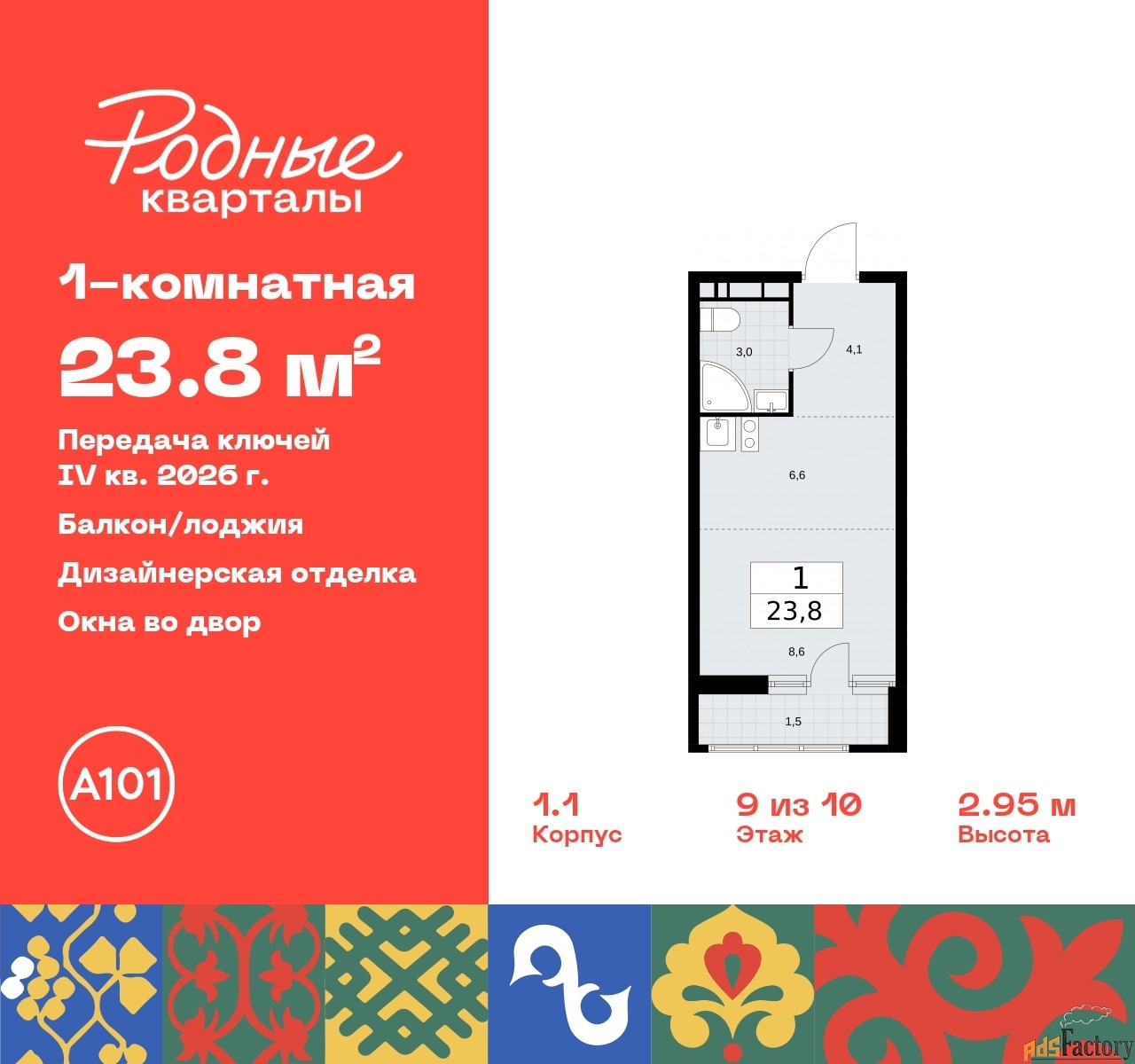 Квартира находится в корпусе 1.1. Дом монолитный, одноподъездный, высотой 10 этажей. На этаже 11 квартир. В подъезде 1 пассажирский и 1 грузовой лифт. Начало строительства - 4 квартал 2023 года. Окончание строительства - 4 квартал 2026 года. Оформление сделки по договору долевого участия.