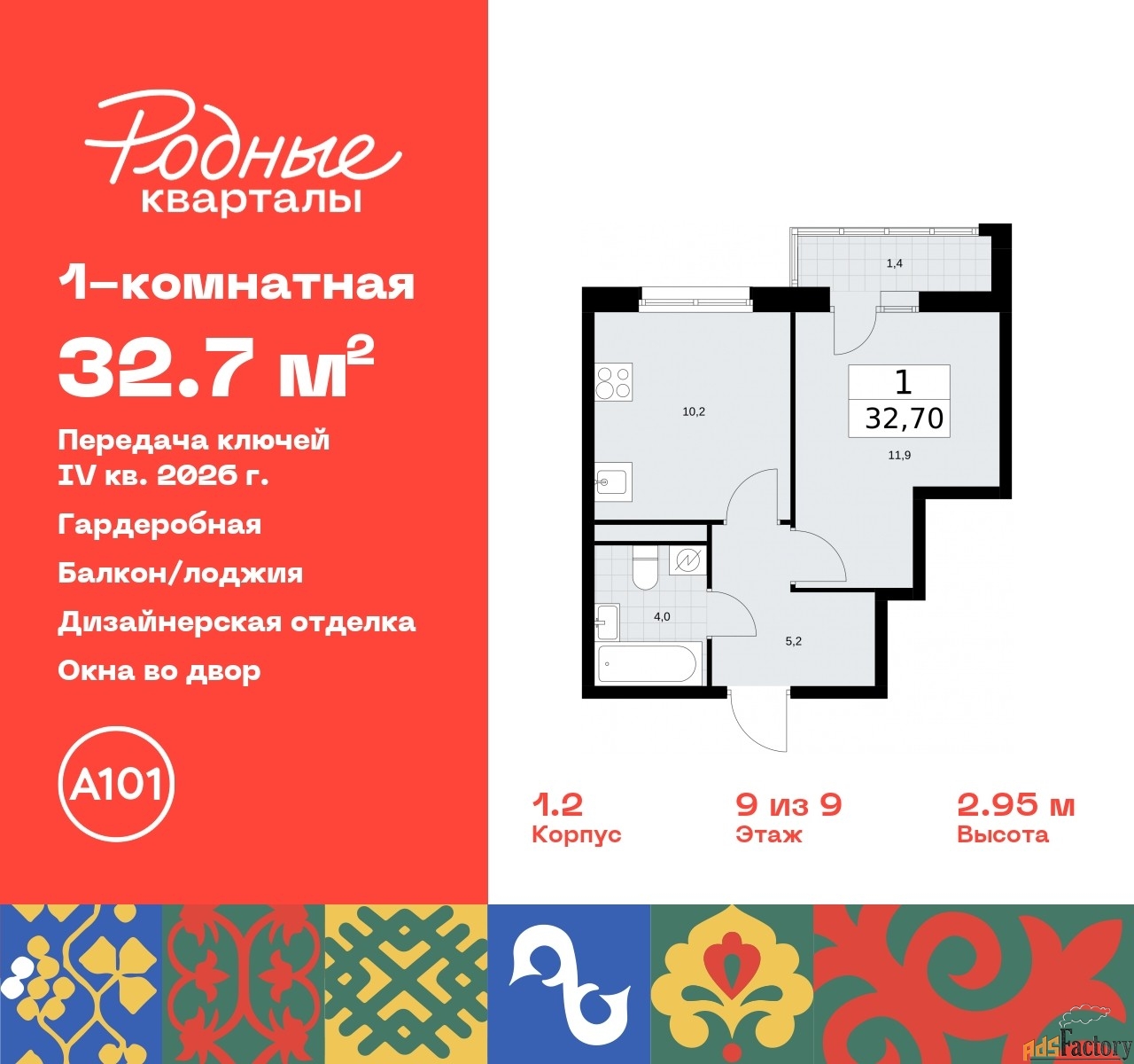 | Общая площадь (кв.м) | 32.7 |